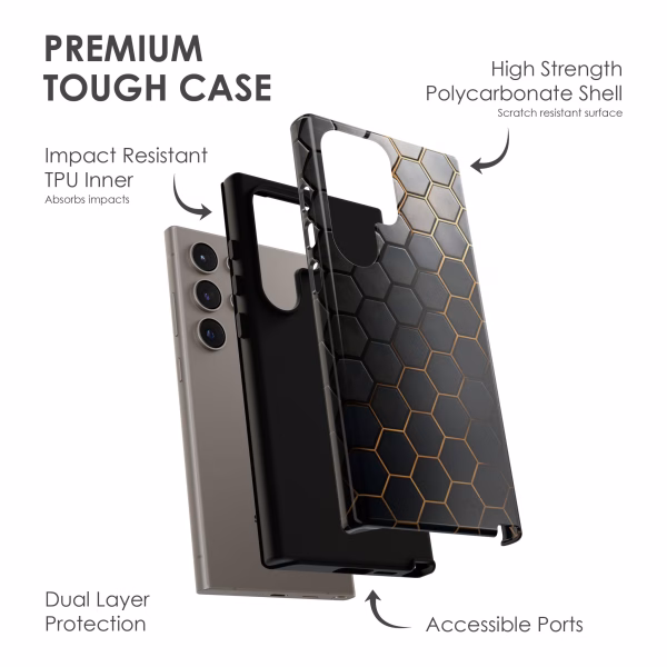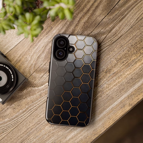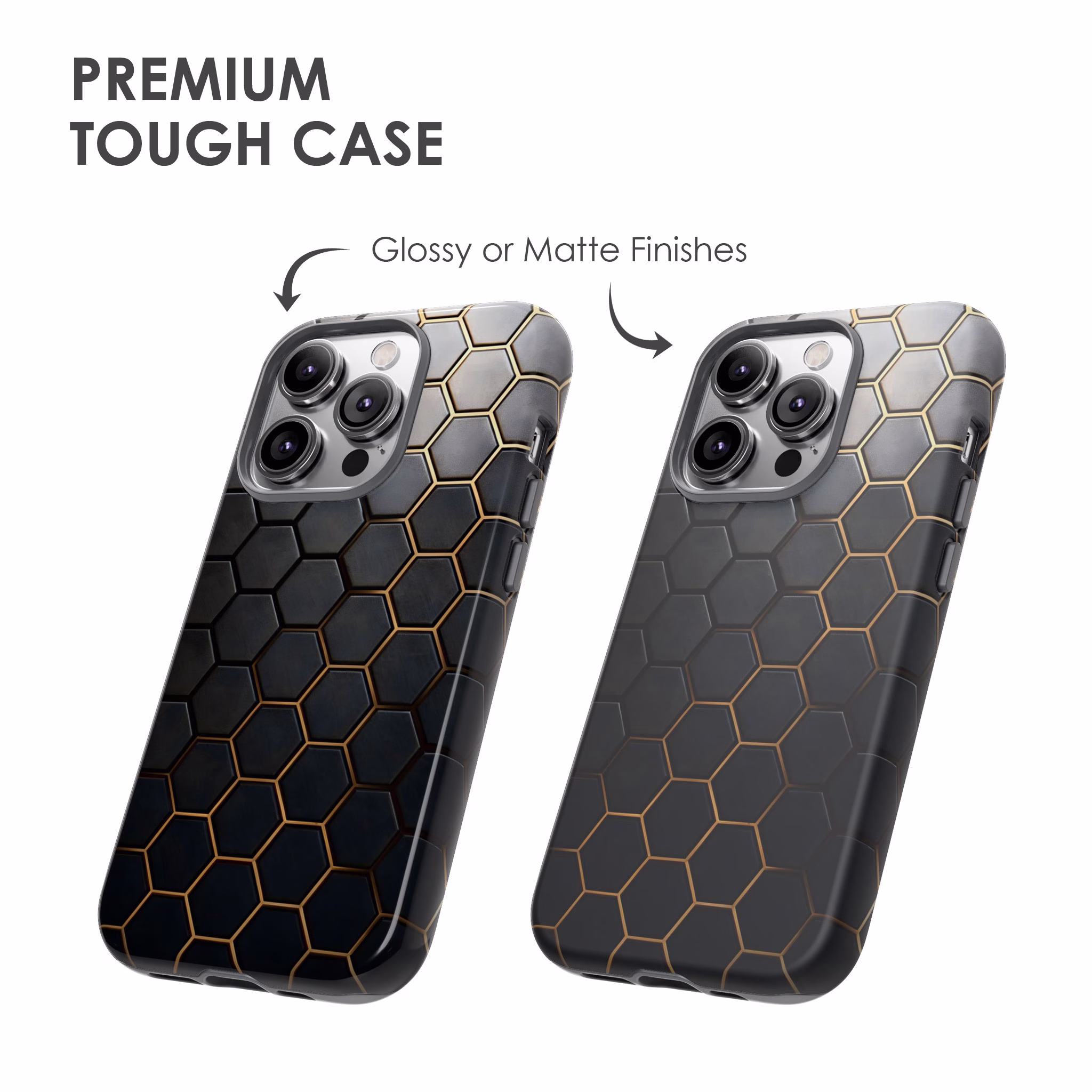 Elevate your device with the Hexagon Phone Case—a sleek blend of geometric precision and bold visual impact. The layered hexagon pattern in grey and black creates a structured, modern look, while vibrant yellow accents add a pop of energy that catches the eye.