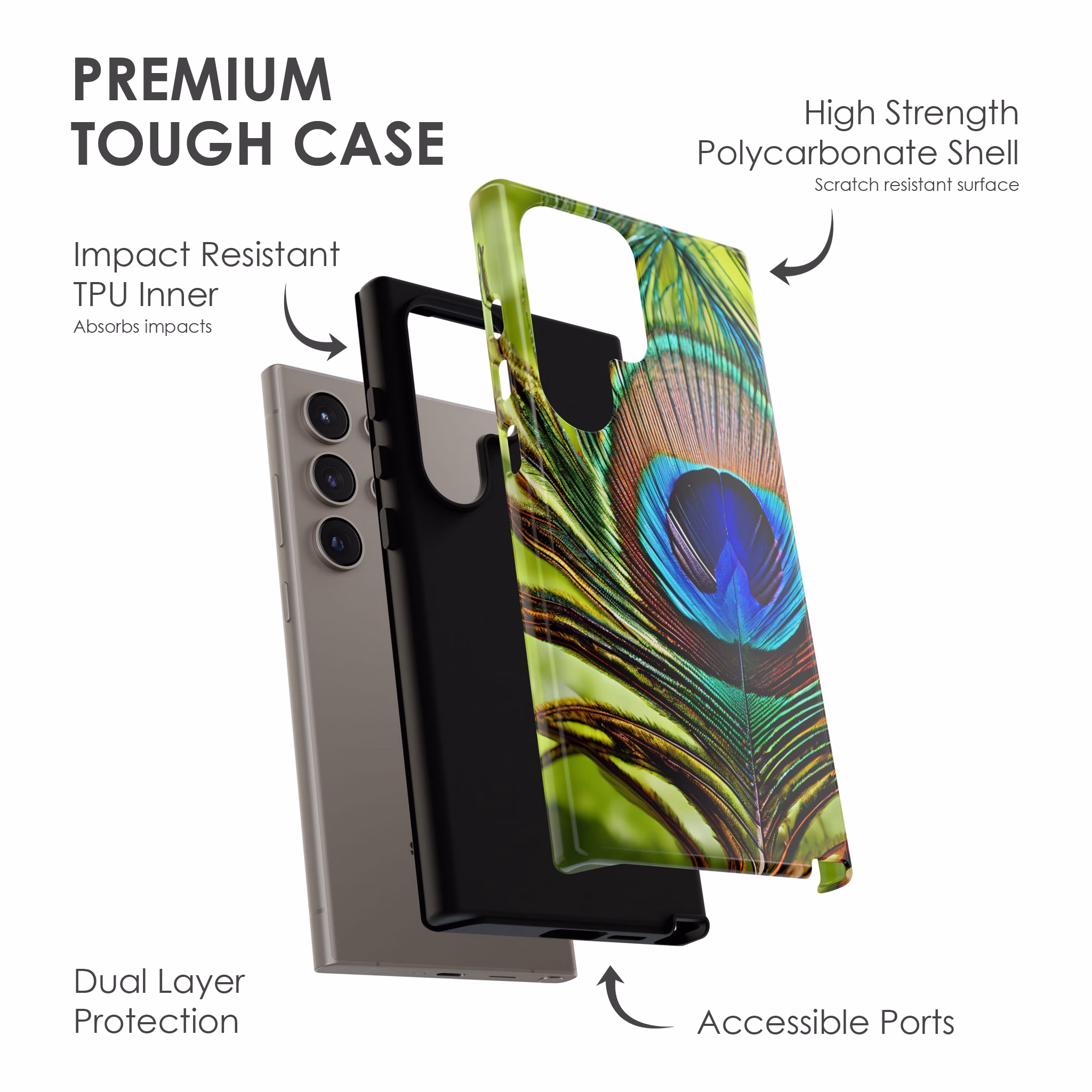 Peacock Feather Phone Case – Vibrant Nature‑Inspired Style for iPhone, Galaxy & Pixel