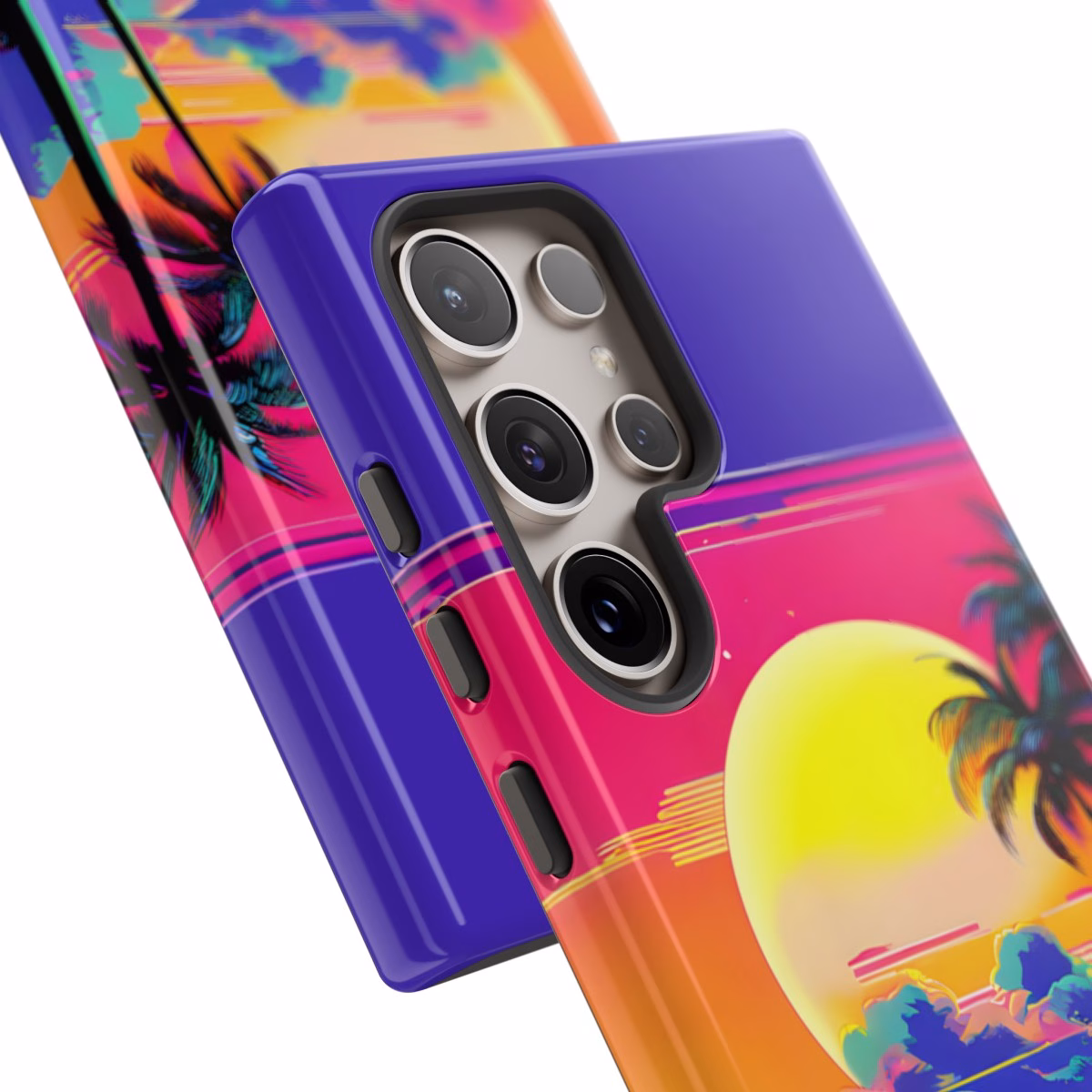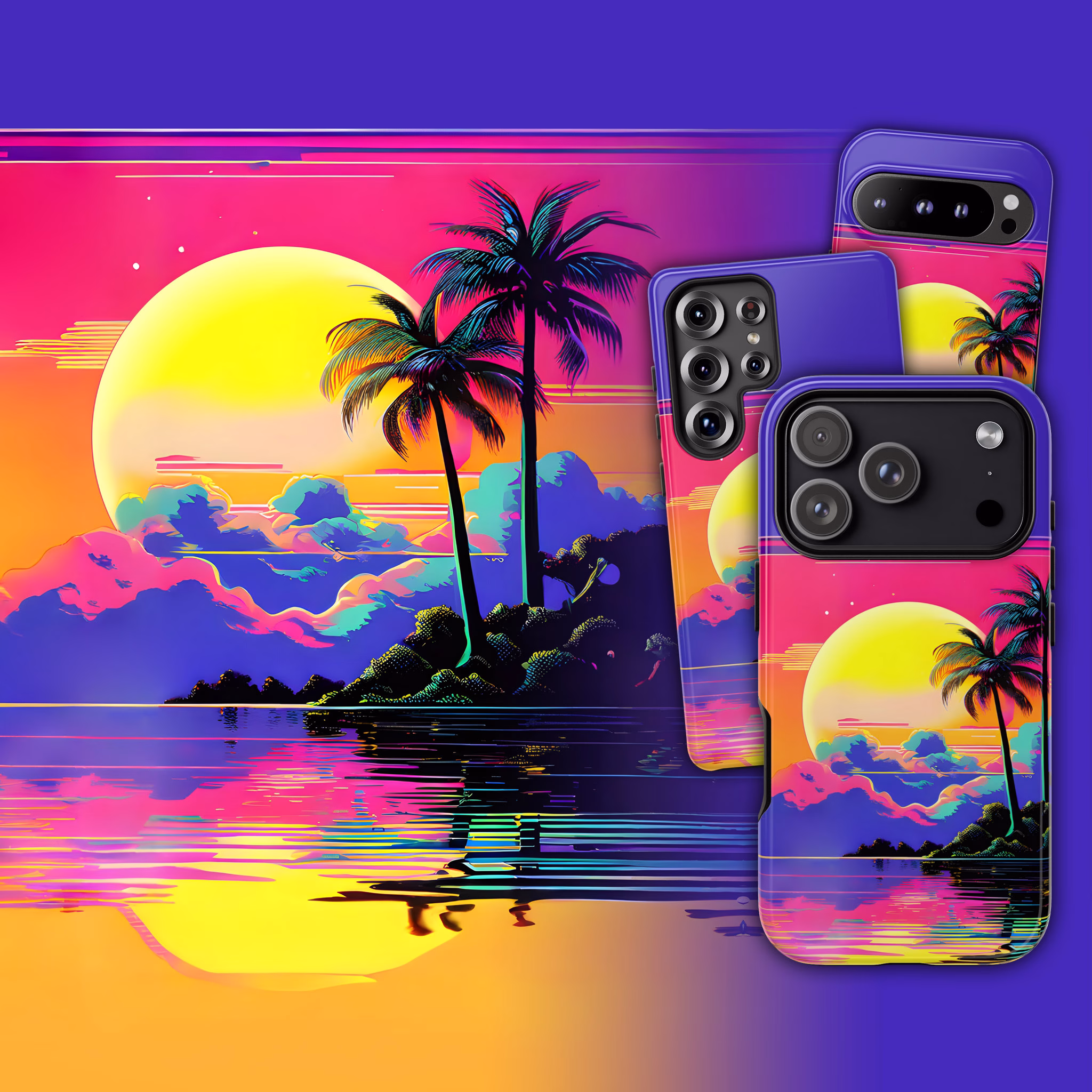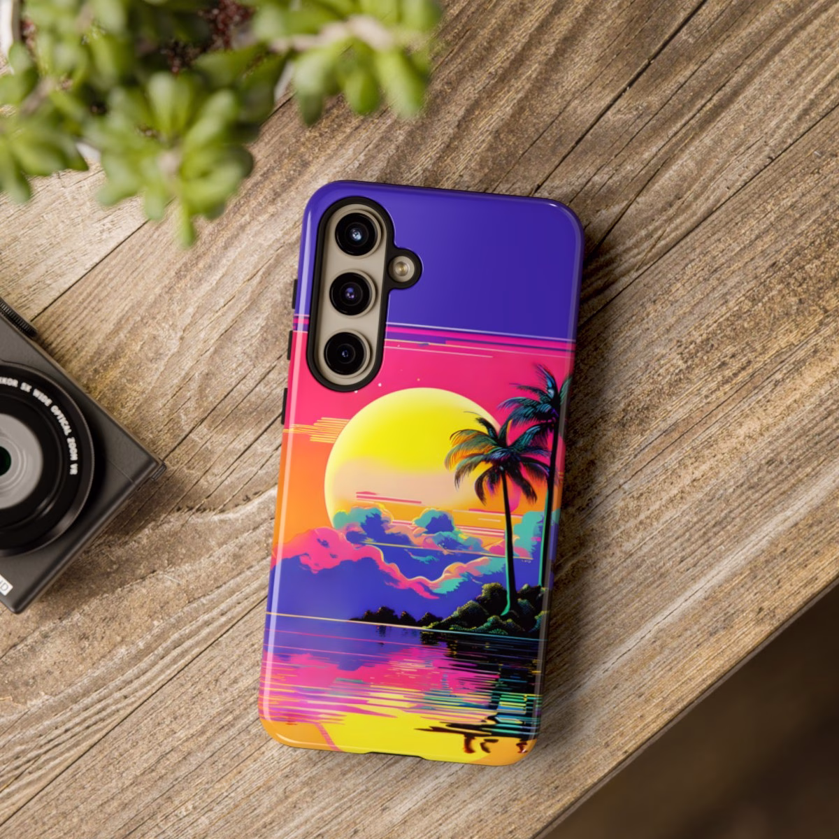 Retro Sunset Phone Case – 90s Beach Vibes for iPhone, Galaxy & Pixel