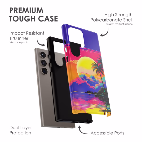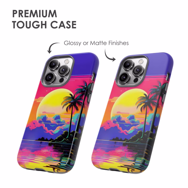 Bring back the glow of the 90s with the Retro Sunset Phone Case—a vibrant blend of nostalgic design and durable protection. Featuring a colourful beach scene with palm trees and a radiant sunset, this case channels summer warmth and retro charm in every detail.