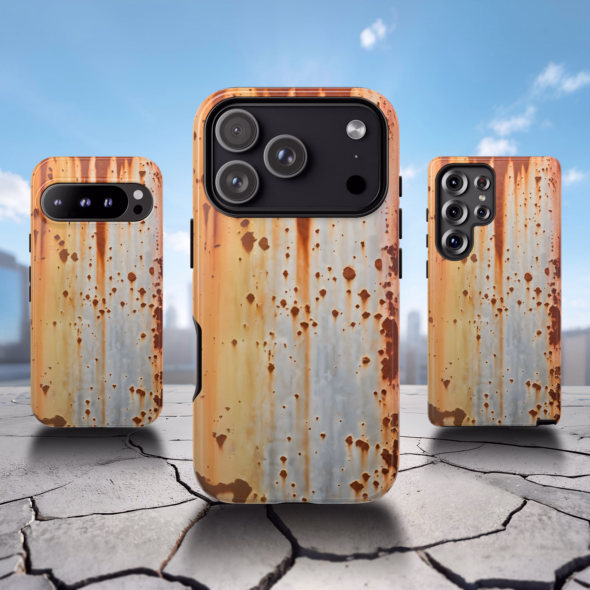 Compatible with iPhone, Samsung Galaxy, and Google Pixel, it offers tough dual‑layer protection to guard against everyday bumps and scratches. Whether you’re drawn to industrial art, retro styling, or bold abstract textures, this rust‑inspired design delivers both durability and standout visual appeal.