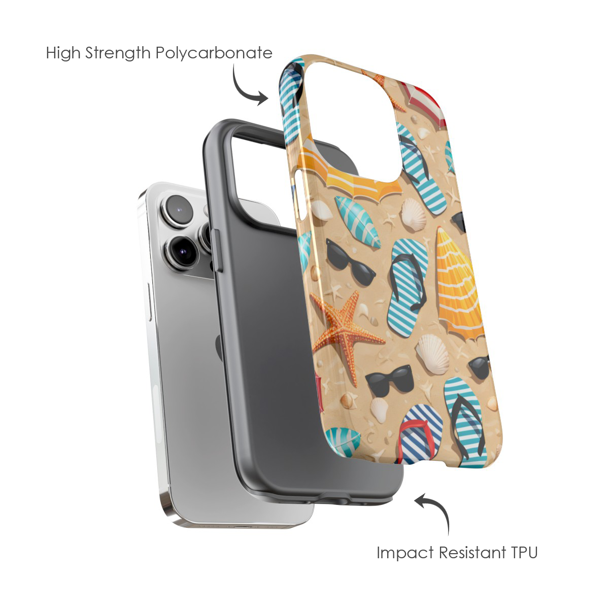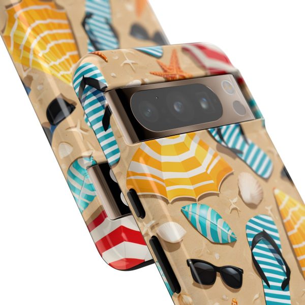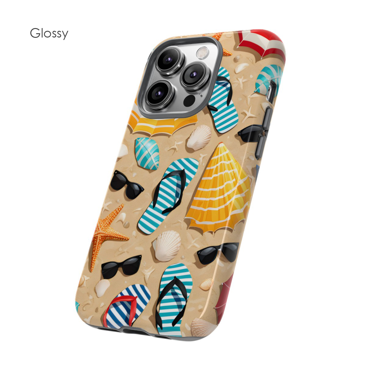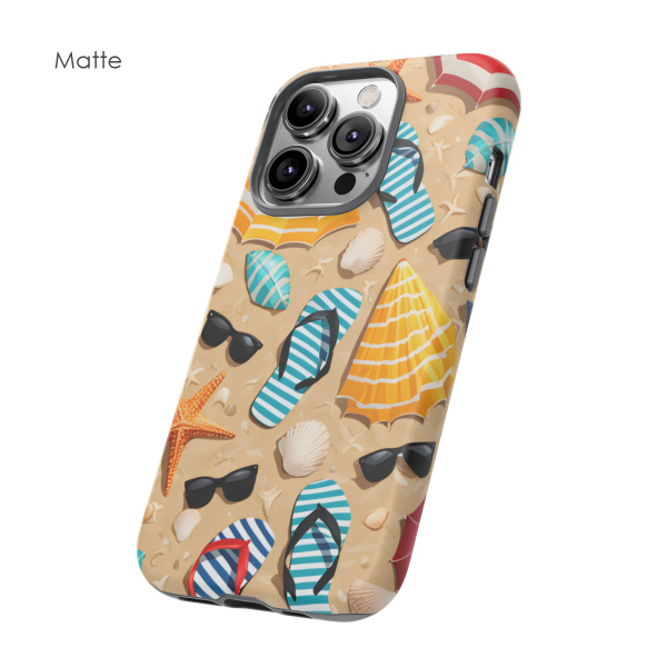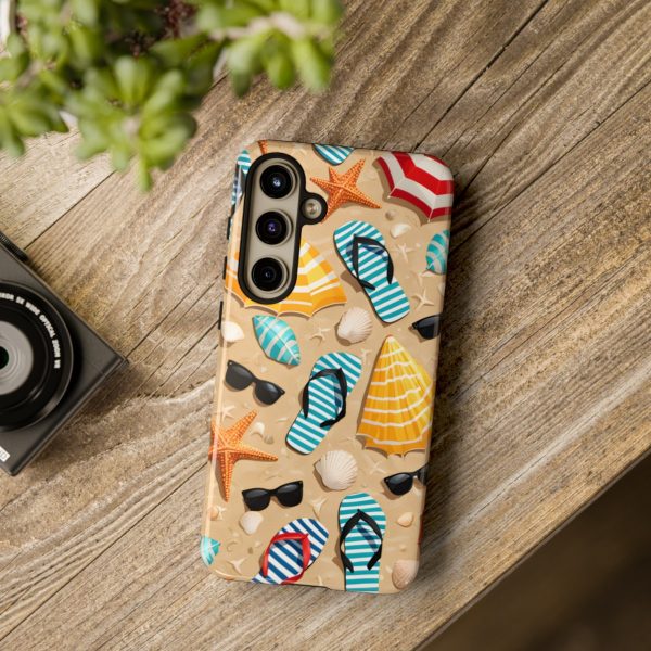 Bring sunny vibes to your device with this Summer Beach Phone Case, featuring a colourful mix of flip flops, sunglasses, parasols, shells, and starfish arranged on a warm sandy backdrop. The bright, playful design captures the carefree spirit of summer, making it an ideal choice for anyone who loves aesthetic, girly, or preppy accessories. It’s a cheerful, beach‑inspired case that instantly lifts your mood and adds a splash of coastal charm to your everyday carry.