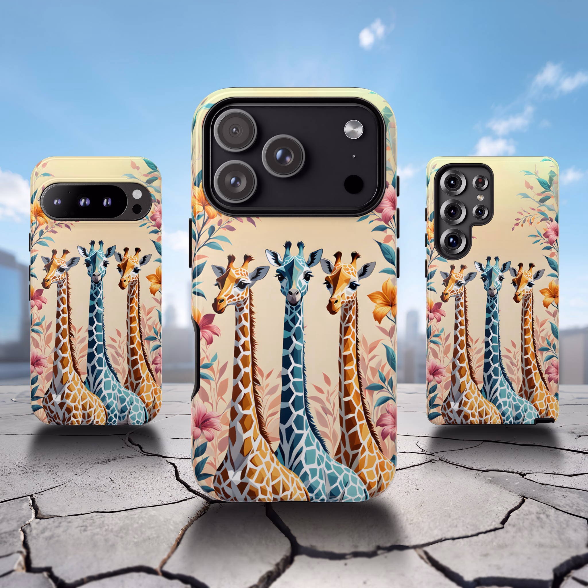 Cute Giraffe Collage Phone Case – Nature Meets Colour for iPhone, Galaxy & Pixel