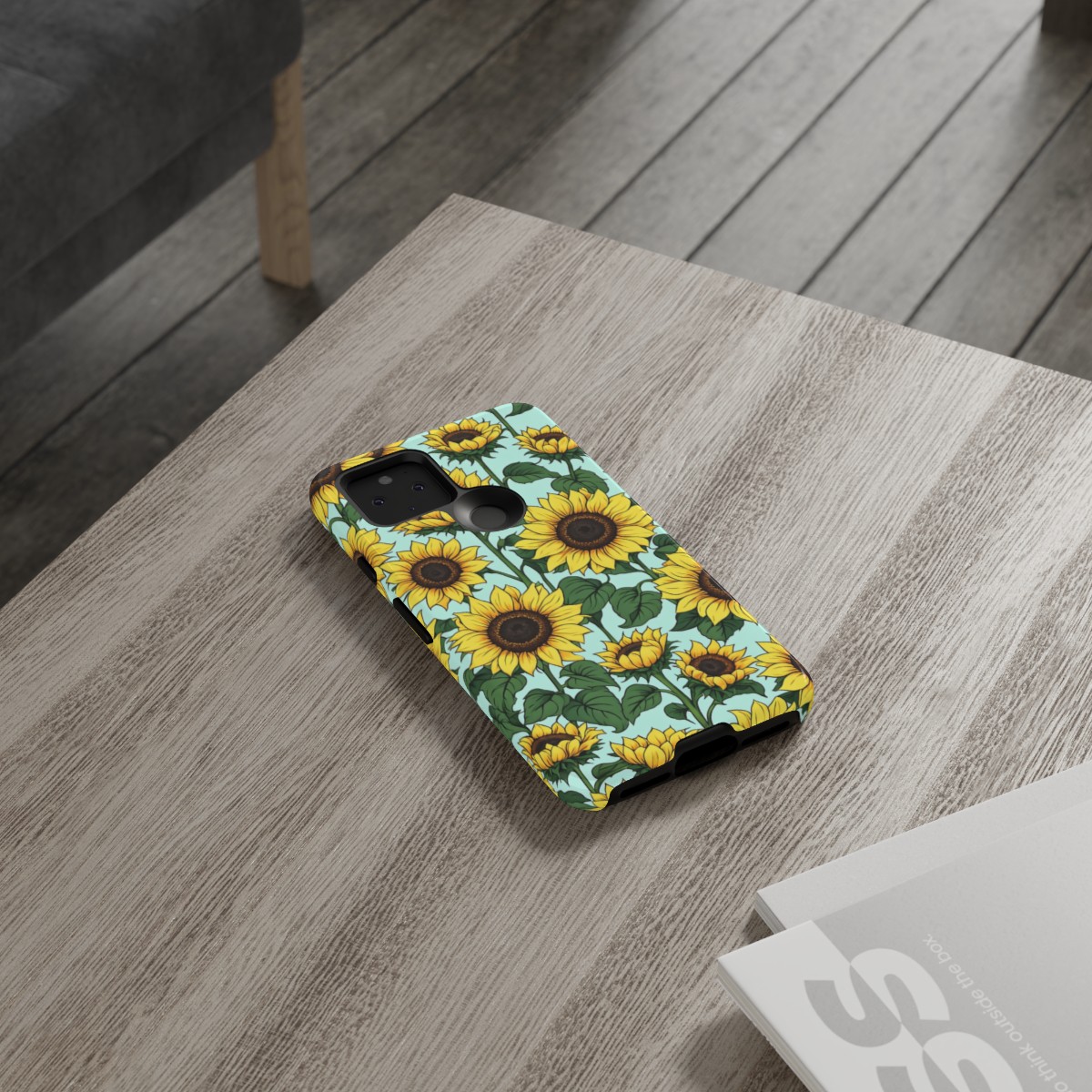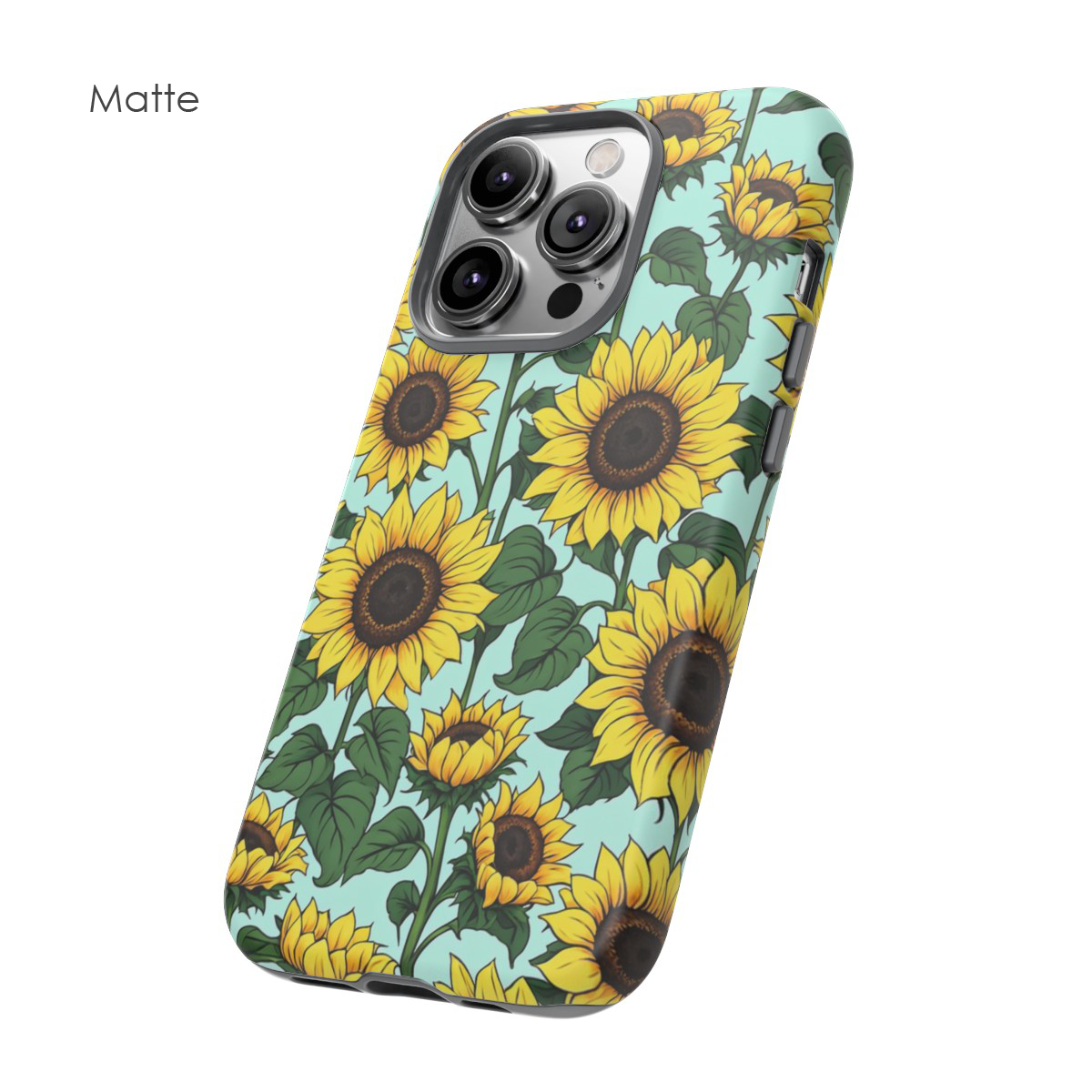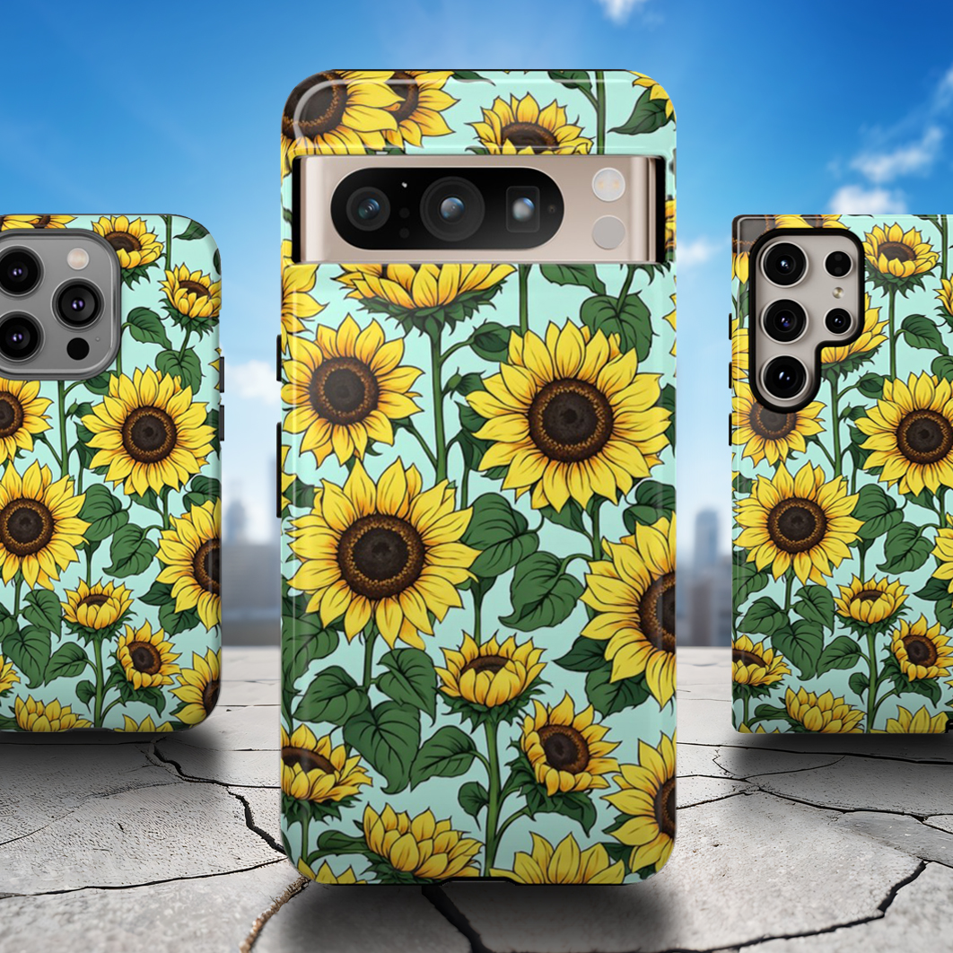 Bring a burst of sunshine to your device with this Sunflower Phone Case, featuring a cheerful arrangement of sunflowers set against a vibrant turquoise background. The bright, aesthetic design blends girly, coquette, and preppy vibes, making it a perfect accessory for anyone who loves bold colour and natural beauty. It’s a feel‑good case that instantly lifts your style and your mood.