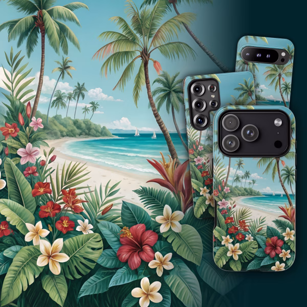 Tropical Beach Phone Case – Dual-Layer Protection for iPhone, Samsung & Pixel