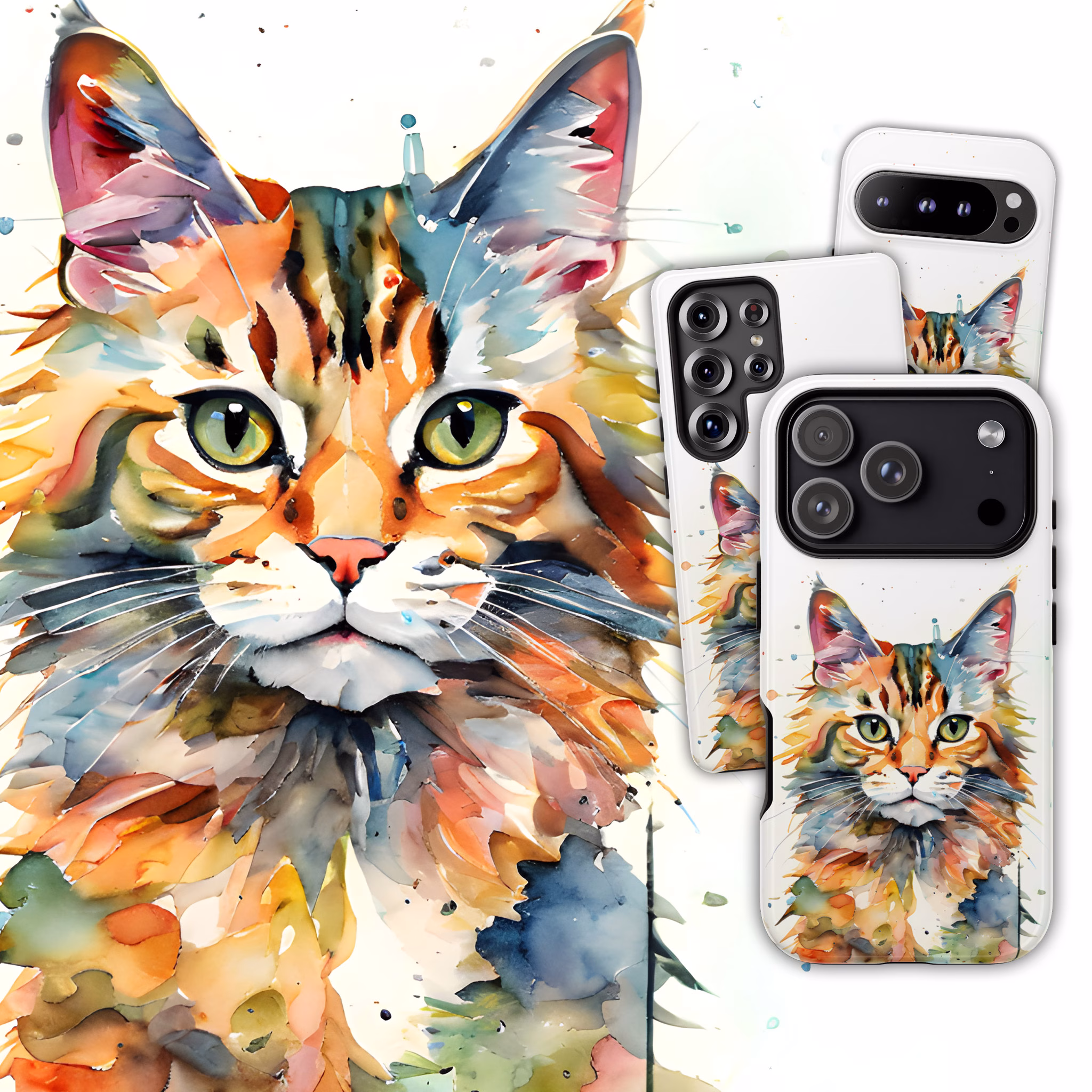 Watercolour Cat Phone Case – Artistic Style for iPhone, Galaxy & Pixel